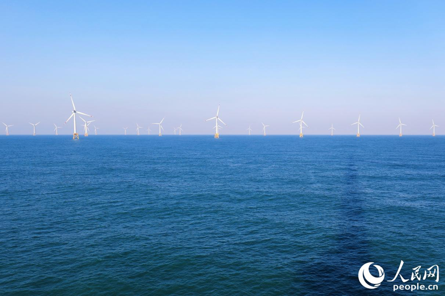 福建長樂以東近50公里洋麪,湛藍的海水一望無垠,一排排白色的“風車”鱗次櫛比。