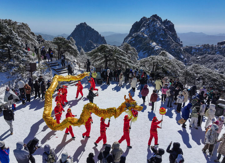 在吉林市冰雪試驗區北大湖滑雪度假區,“2025北大湖新春遊園會”熱鬧非凡。雪場上,伴隨着喜慶的鼓點,舞龍舞獅隊伍歡快騰躍;民樂合奏“金蛇狂舞”迴盪在北大湖,更添喜慶;書法家們現場寫春聯,為遊客送上“新春禮物”。