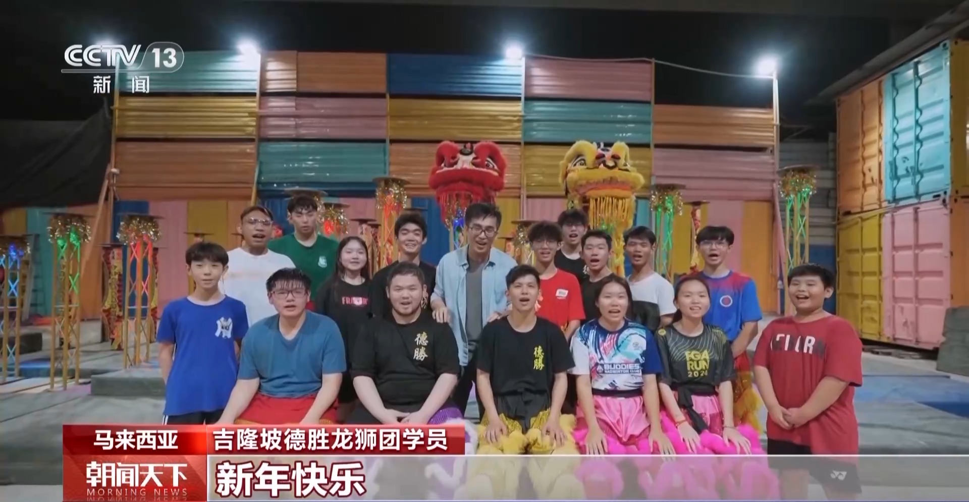 *吉隆坡德勝龍獅團部分學員:*咱們馬來西亞的龍獅團一起祝中國觀眾,新年快樂,蛇年大吉,興,旺,發。
