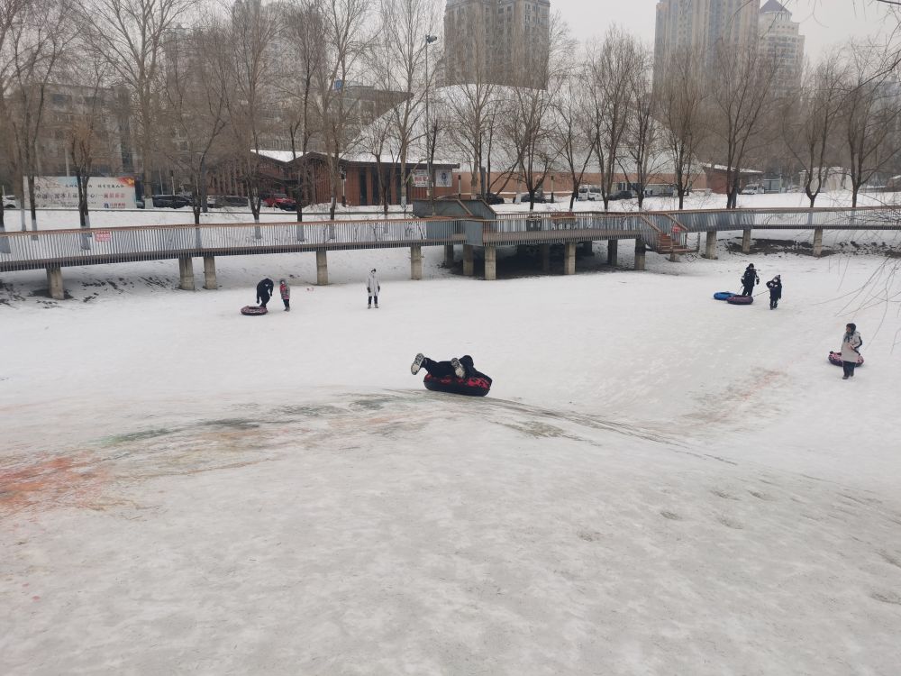 在哈爾濱湘江公園,28日一早,10歲的黃梓天就和爸爸一起來玩雪圈。這處公園裏形成的自然雪坡,每年冬季都成為市民滑雪圈的好去處。“早上孩子要來,就帶着過來玩一會,也是一種過年的方式。”黃梓天的父親黃文説。
