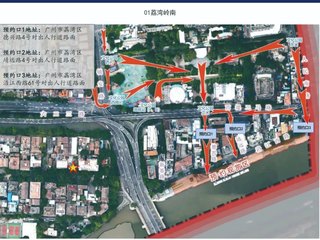 (01荔灣嶺南沙基廣場、02荔灣沙面公園、03荔灣多寶御景壹號江邊、04荔灣石圍塘山村江邊公園、05荔灣花地立白江邊公園、06荔灣衝口長堤街江邊)