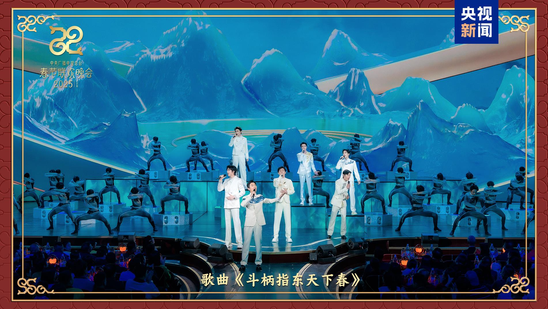 武術《筆走龍蛇》中,甄子丹與眾武者以舞台為硯,一招一式剛柔並濟、揮灑自如,以太極武術的力與美,將李白《草書歌行》中的“筆走龍蛇”具象化,展現中國書法墨染千里、寫意山河的神與魂。歌曲《斗柄指東天下春》再現中國古代天文曆法智慧,朱亞文、白宇、劉宇寧、蔣奇明、許凱、丁禹兮、王安宇化作北斗七星,在虛實結合的影像空間裏上演四季變換與星象流轉,帶觀眾走向充滿生機與希望的乙巳蛇年。整場晚會中,百餘種非遺巧妙出現,與大家共度熱熱鬧鬧的“非遺版”春節。