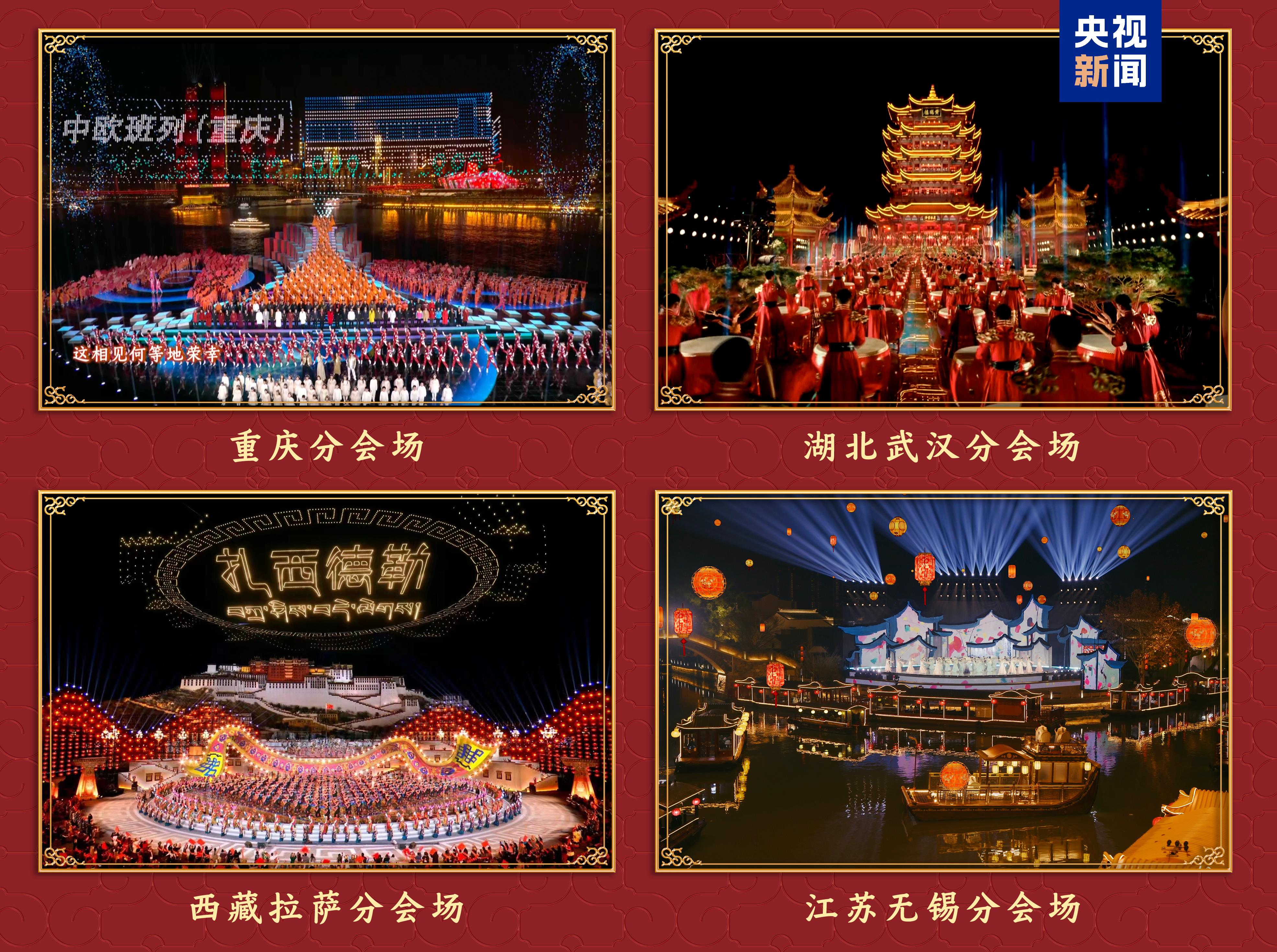 重慶、湖北武漢、西藏拉薩、江蘇無錫四地分會場遙相呼應,一幅幅獨具城市魅力的畫卷,勾勒出祖國山河的壯麗圖景。重慶分會場以“慶·新春”為主題,千廝門大橋的“新春新潮夜”情景音樂秀、780輛新能源汽車智控燈陣和3000架無人機編組的光影聯動,展現山城8D立體的無限魅力。湖北武漢分會場《星漢耀江城》煙火氣濃郁、人情味滿滿,新派戲曲將京、楚、漢三劇種融匯編創,雜技與傳統楚樂創意呈現,鳳凰圖騰振翅欲飛,“英雄城市”深厚的文化底藴和大江大湖的豪爽之氣一覽無遺。西藏拉薩分會場千人鼓潮融匯熱巴舞、卓舞等西藏傳統舞蹈,才旦卓瑪領銜唱出中華民族一家親的團圓景象;現場還為定日縣送去誠摯祝福,表達出人民至上、風雨同舟、重建美麗新家園的堅定信心;那曲薩普雪山、昌都來古冰川等自然風光遼闊壯美,令人神往。江蘇無錫分會場在江南水鄉上演一場穿越古今的《無錫景·家國情》,曲水穿城而過,評彈曲調婉轉流長,文人墨客揮毫潑墨,千年運河之上千帆競發,在源遠流長的文化與磅礴的工業力量中展現“太湖明珠”的豐沛迷人。