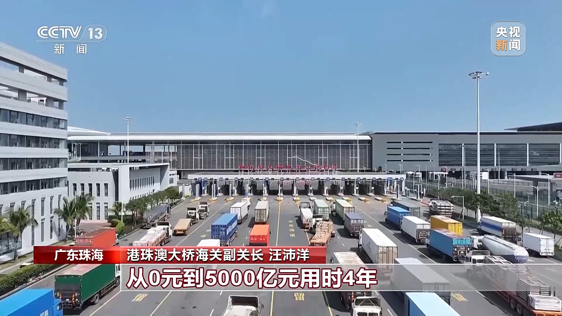 *港珠澳大橋海關副關長 汪沛洋:*大橋口岸的進出口總值從0元到5000億元用時4年,從5000億元到突破10000億元用時2年2個月,大橋外貿通道的活力得到持續釋放。