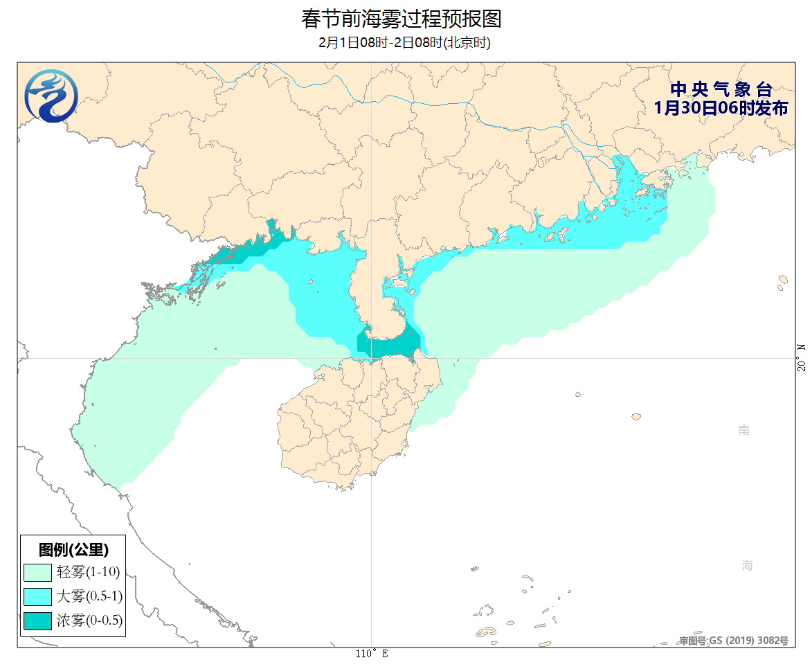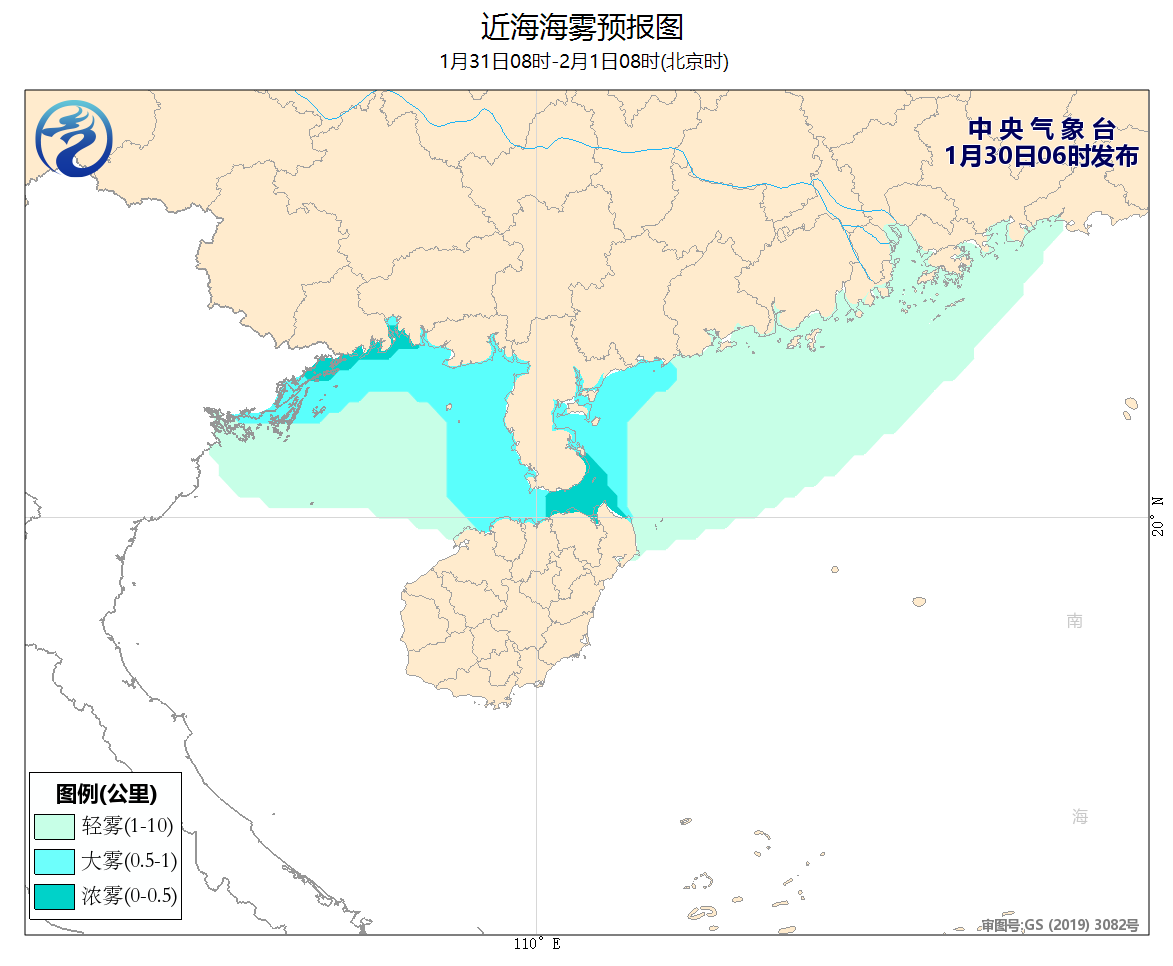 1月31日08時至2月1日08時,黃海南部海域將有4~5級增大到6~7級、陣風8級的偏東到東北風,巴士海峽、南海東北部海域將有6~7級、陣風8級的偏東風,東海大部海域將有4~6級、陣風7級的東南風,黃海中部海域、南海西南部海域將有4~6級、陣風7級的偏北到東北風,台灣以東洋麪將有4~6級、陣風7級的偏東風。北部灣北部海域、瓊州海峽、南海西北部海域將有輕霧,能見度不足10公里,其中瓊州海峽、雷州半島沿岸海域、廣西沿岸海域夜間至早晨將有大霧,能見度不足1公里,瓊州海峽中東部和廣西西部沿岸海域將有能見度不足500米的濃霧。