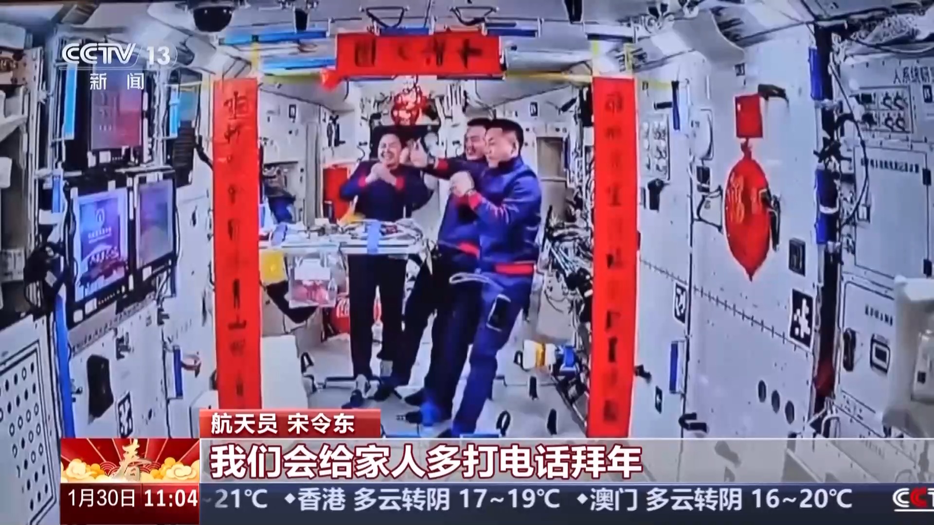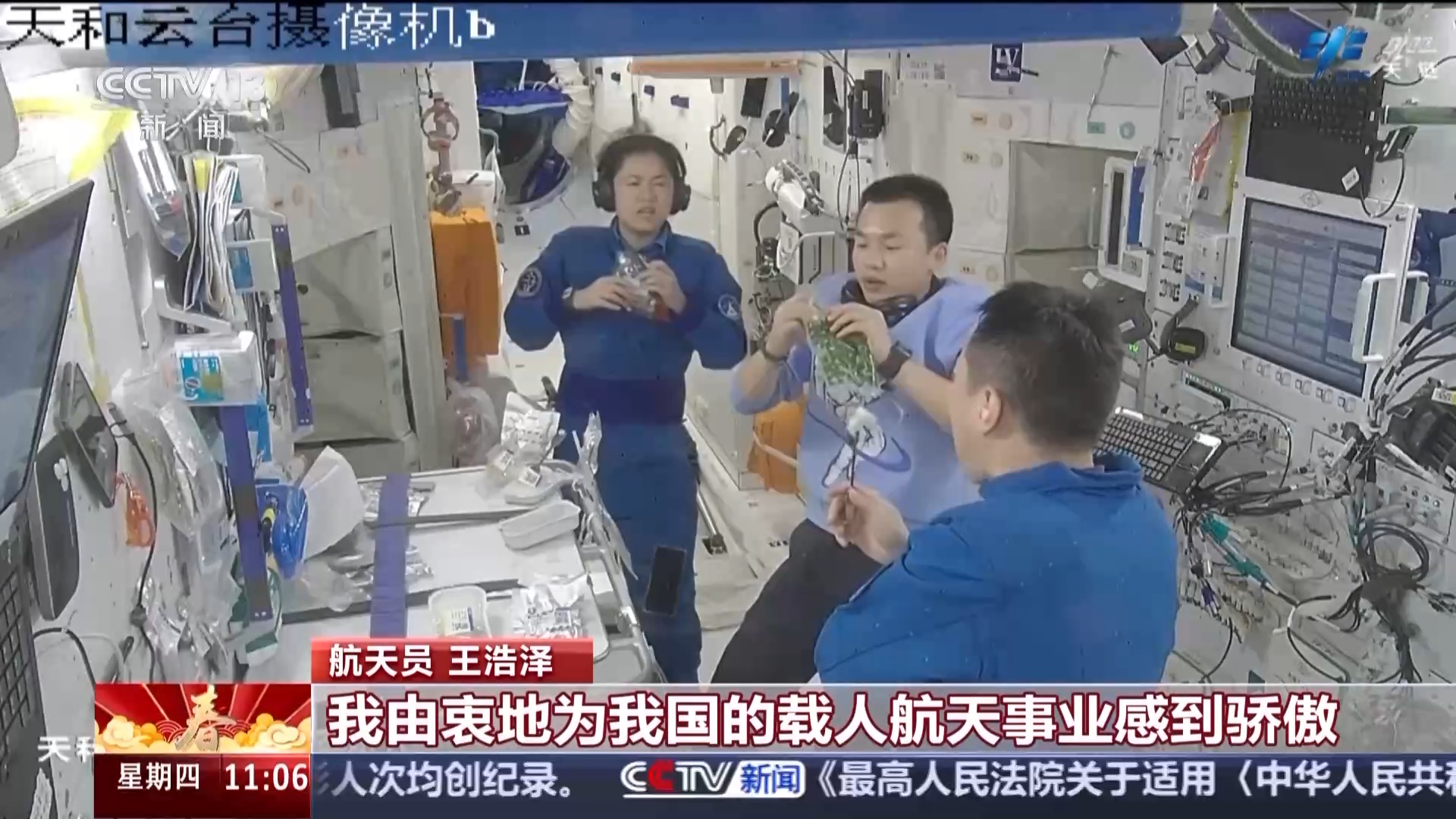 我們也會回顧一下三個月的出差生活,我會把這些生活都寫成一段小故事,等我回到地球的時候,我要講給我的孩子們聽。我們也會利用這段時間對後三個月的任務進行一些規劃,展望一下後三個月的生活,這也是我們乘組三人首次在空間站度過春節,我也準備偷偷地給他們送上一份神秘的驚喜。值此萬家團圓之際,我們三人值守在中國空間站,意義非凡而光榮,我感覺非常自豪。