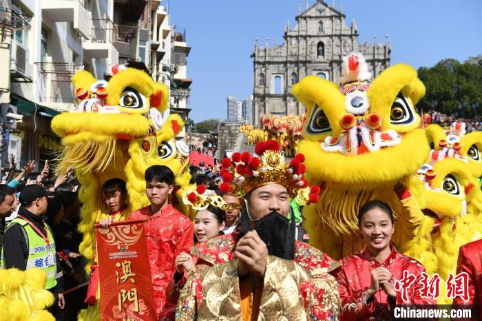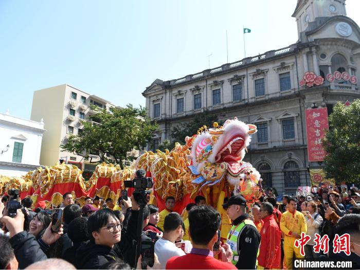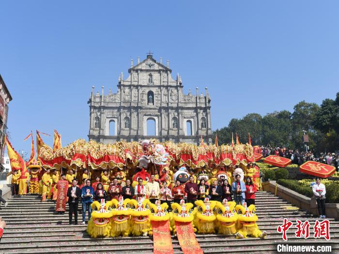 (新春見聞)特寫:大三巴前春意“鬧” 龍騰獅躍賀新年