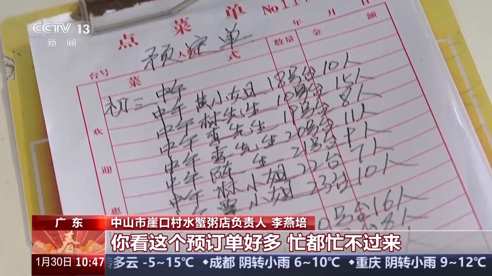 *中山市崖口村水蟹粥店負責人 李燕培:*預訂單好多,忙都忙不過來。深中通道開通之前,這條街基本上都面臨倒閉了,開通之後帶動客流量好大,香港、澳門包括東莞的客人都多了好多。