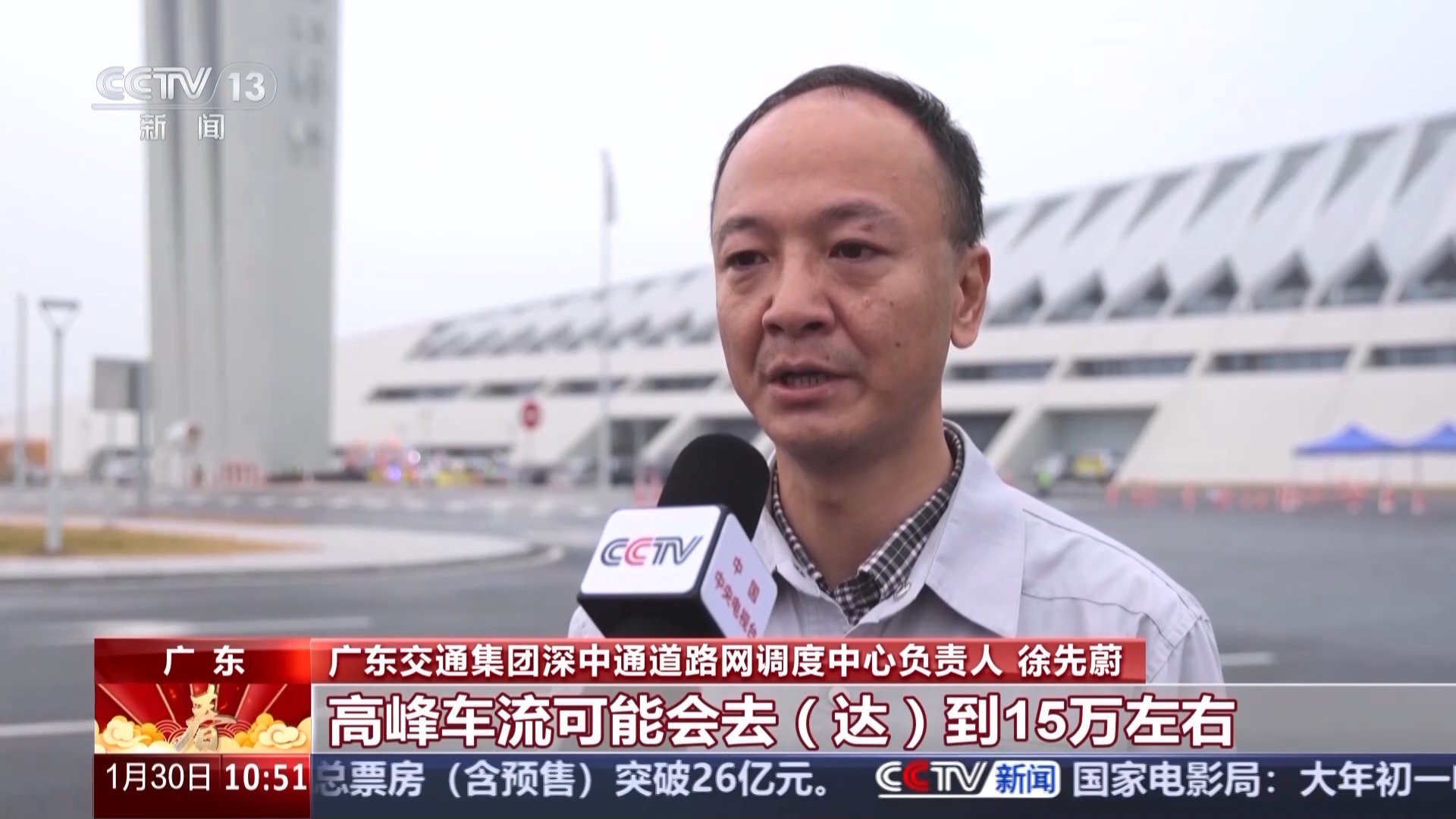 *廣東交通集團深中通道路網調度中心負責人 徐先蔚:*高峯日車流可能會達到15萬左右,路網調度中心、路政人員,都是三班倒,24小時在崗堅守,給大家帶來一個人旺車暢、幸福團圓的中國年。