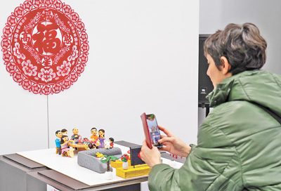 中西藝術交流項目“共生——生肖藝術展”日前在西班牙首都馬德里中國文化中心舉行。圖為當地民眾觀看展覽。