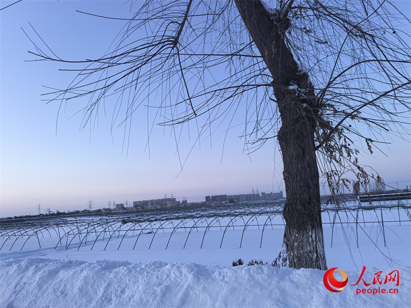 天山腳下,青格達湖邊,下了一天一夜的大雪剛停,劉建軍就去了隔壁新聯村的清潔能源智能温室育苗大棚,看看前幾天育的茄子發芽了沒。