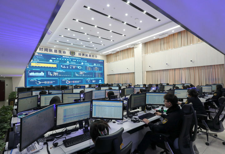 上海市醫療急救調度指揮中心內景。新華社記者 方喆 攝