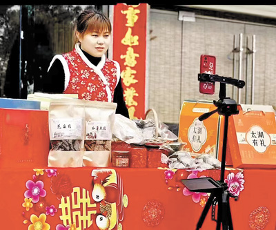 “我們的直播間年貨多多,有自家醃製的臘肉、手工紅薯米糖,還有用傳統方法制作的豆腐乳、臘魚丁。太湖山美水好,特色農產品的品質也有保證。”安徽安慶太湖縣,電商公共服務中心負責人佔麗達穿着喜慶,正在直播間介紹本地農產品。