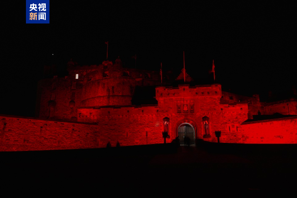 英國蘇格蘭地標愛丁堡城堡亮起“中國紅”