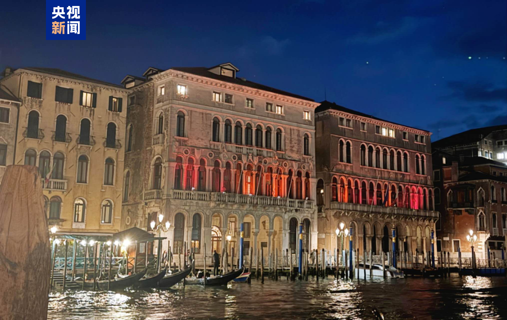 △威尼斯市市政大樓點亮“中國紅”