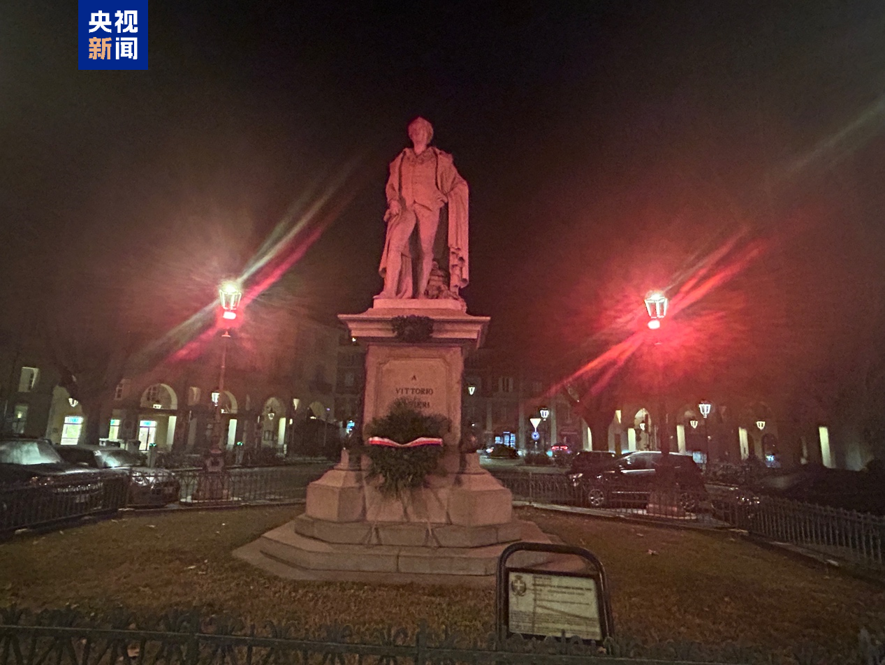 △阿斯蒂市地標維托里奧·阿爾菲耶裏雕像點亮“中國紅”