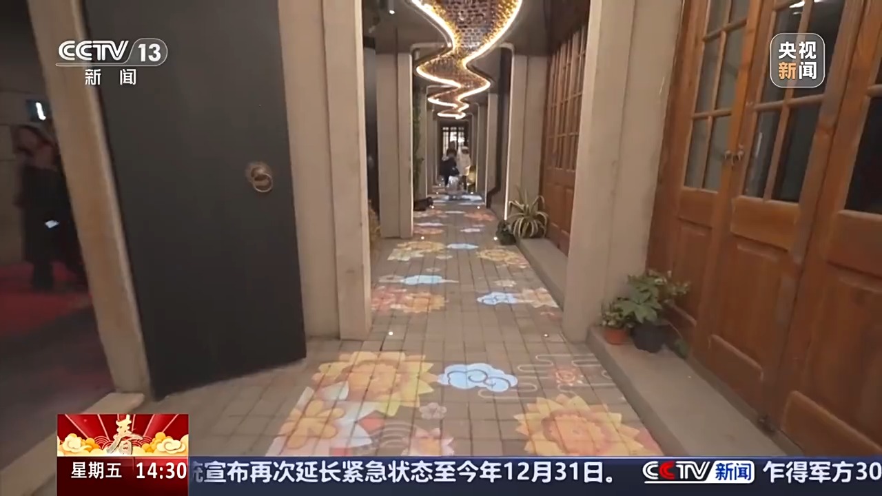 夜幕降臨,一場新春光影秀又在街區上演,絢麗的煙花與非遺剪紙隨光影綻放在石庫門建築上,讓新春的夜晚熠熠生輝,帶動商圈消費持續走熱。