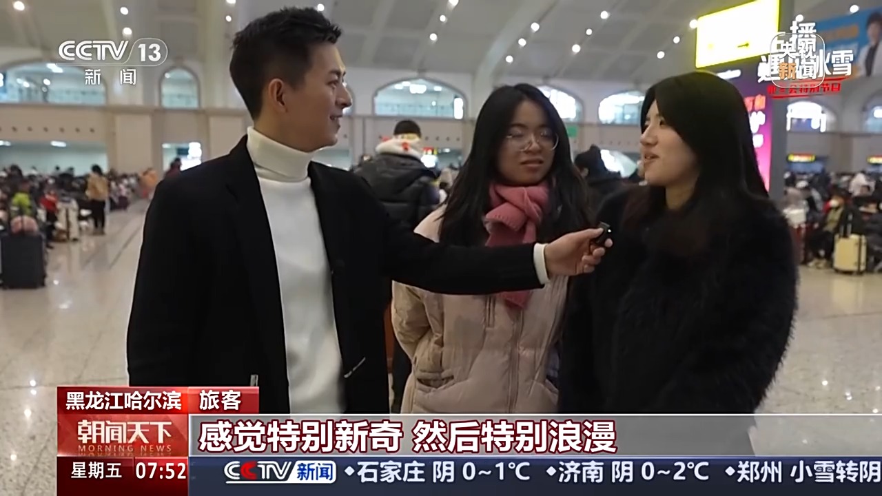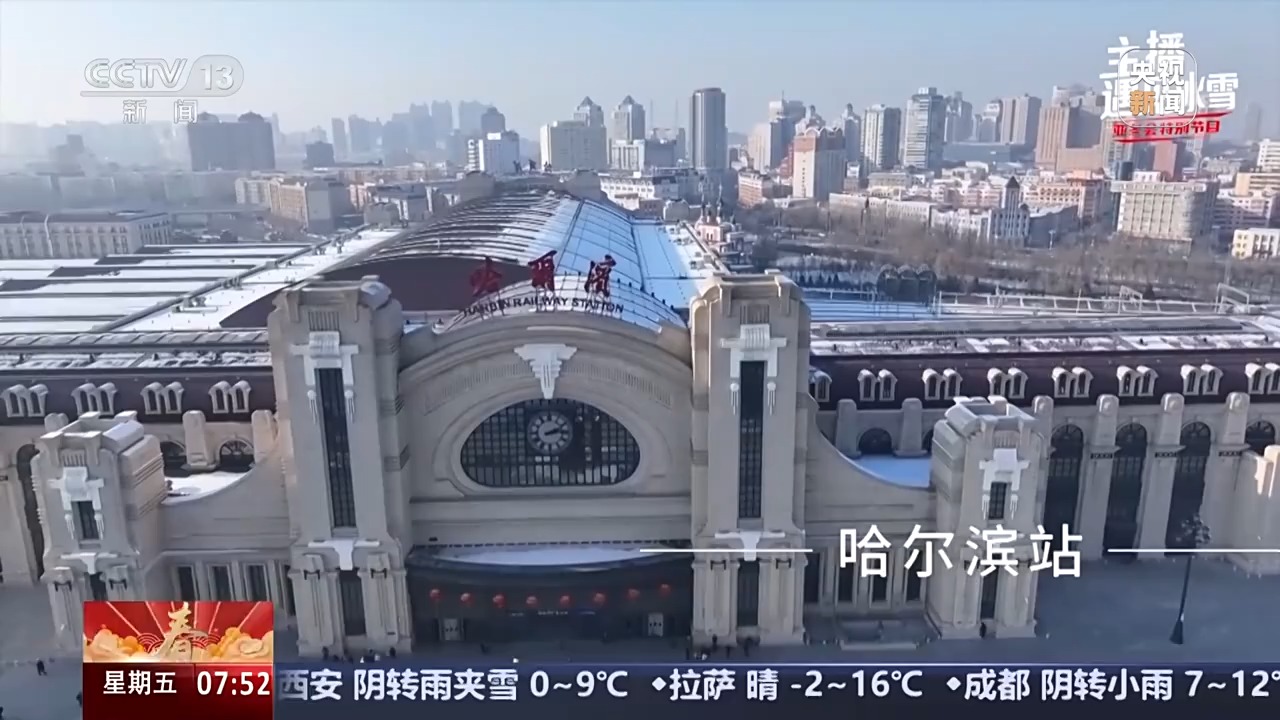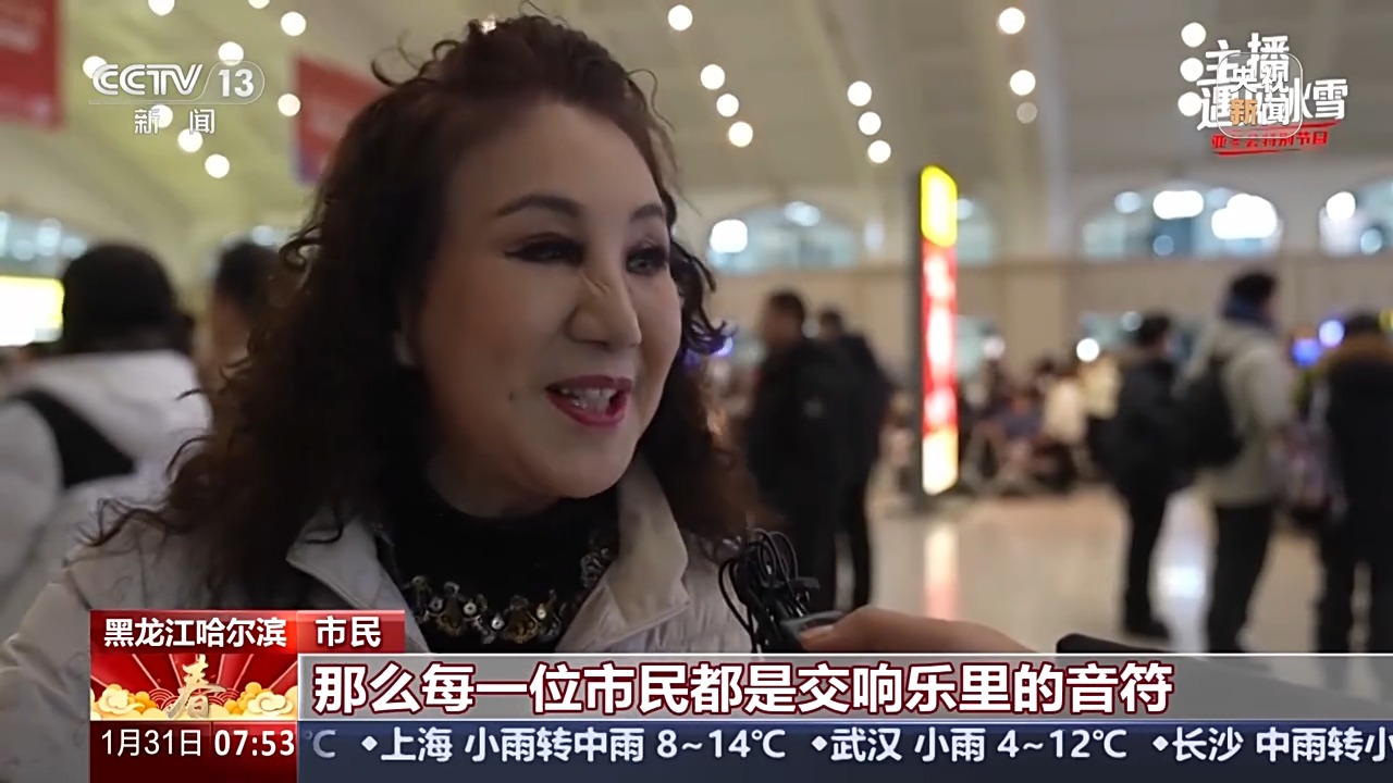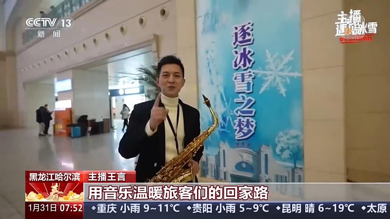 *主播 王言:*音樂元素在哈爾濱隨處可見,這裏是有百年曆史的哈爾濱火車站。在火車站的候車大廳,有一個專門的藝術舞台,每年都有這裏的專業樂手和來自音樂院校的學生們,為大家來進行音樂表演,用音樂温暖旅客們的回家路,今天我也加入他們。