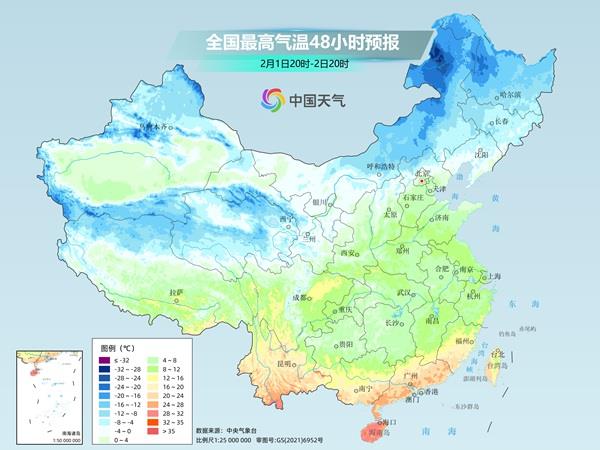 2月1日主要影響新疆,2日、3日影響中東部大部地區,氣温普遍下降4℃~6℃,西北地區東南部、華北北部、東北地區、江南東部、華南等地部分地區下降6℃~8℃,北方地區還將伴有4~5級風,陣風7~8級。東部和南部海域有6~8級、陣風9級大風。