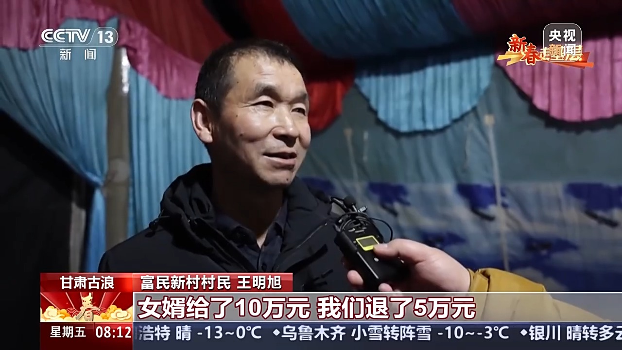 *富民新村村民 王明旭:*女婿給了10萬元,我們退了5萬元,剩下的用於婚禮的開銷。要得多了,也是給年輕人增加負擔。