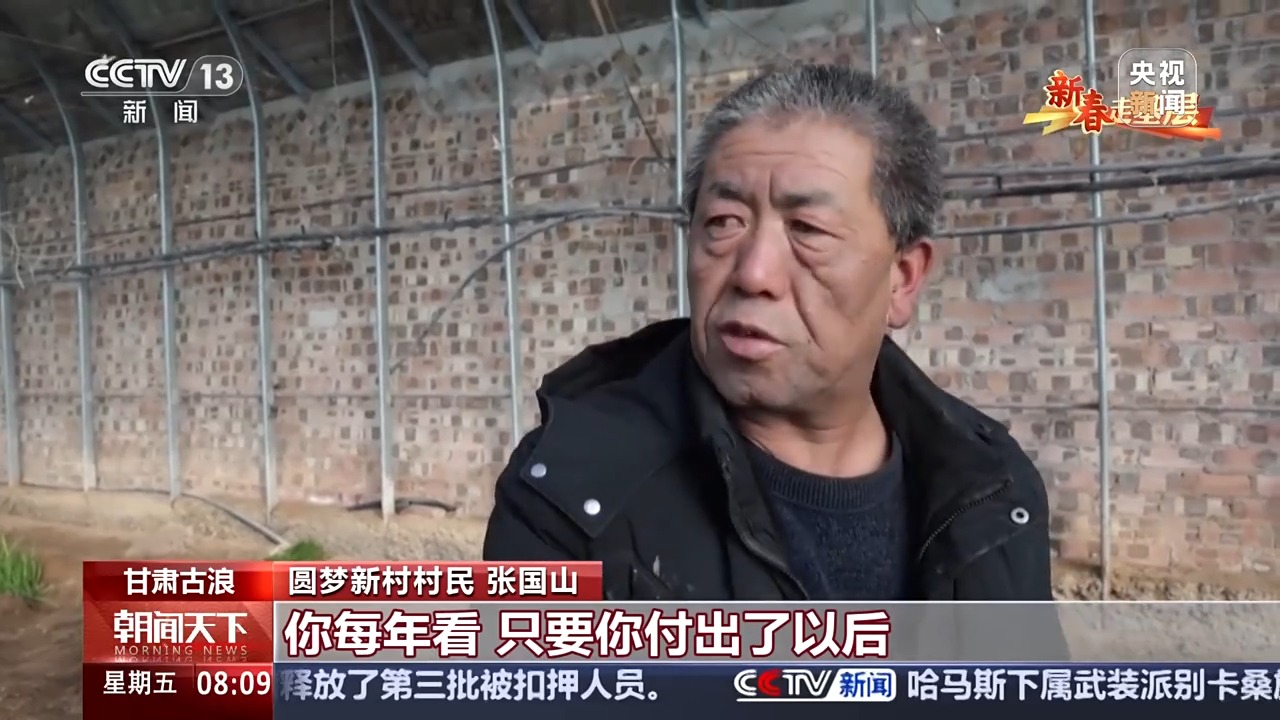 *圓夢新村村民 張國山:*寧夏當時有個合作社,每天在西安市場發一個掛車,我就在那學了三天,種富山88小番茄,山東種得最好,我去了一次山東,人蔘果,雲南種得最好,我就去了一次雲南,張掖、武威、蘭州這邊的培訓,我是每次都去,不管多忙,我是每次必到。跟政府“等、靠、要”,這種習慣,這種想法,過不了日子,必須自立自強。