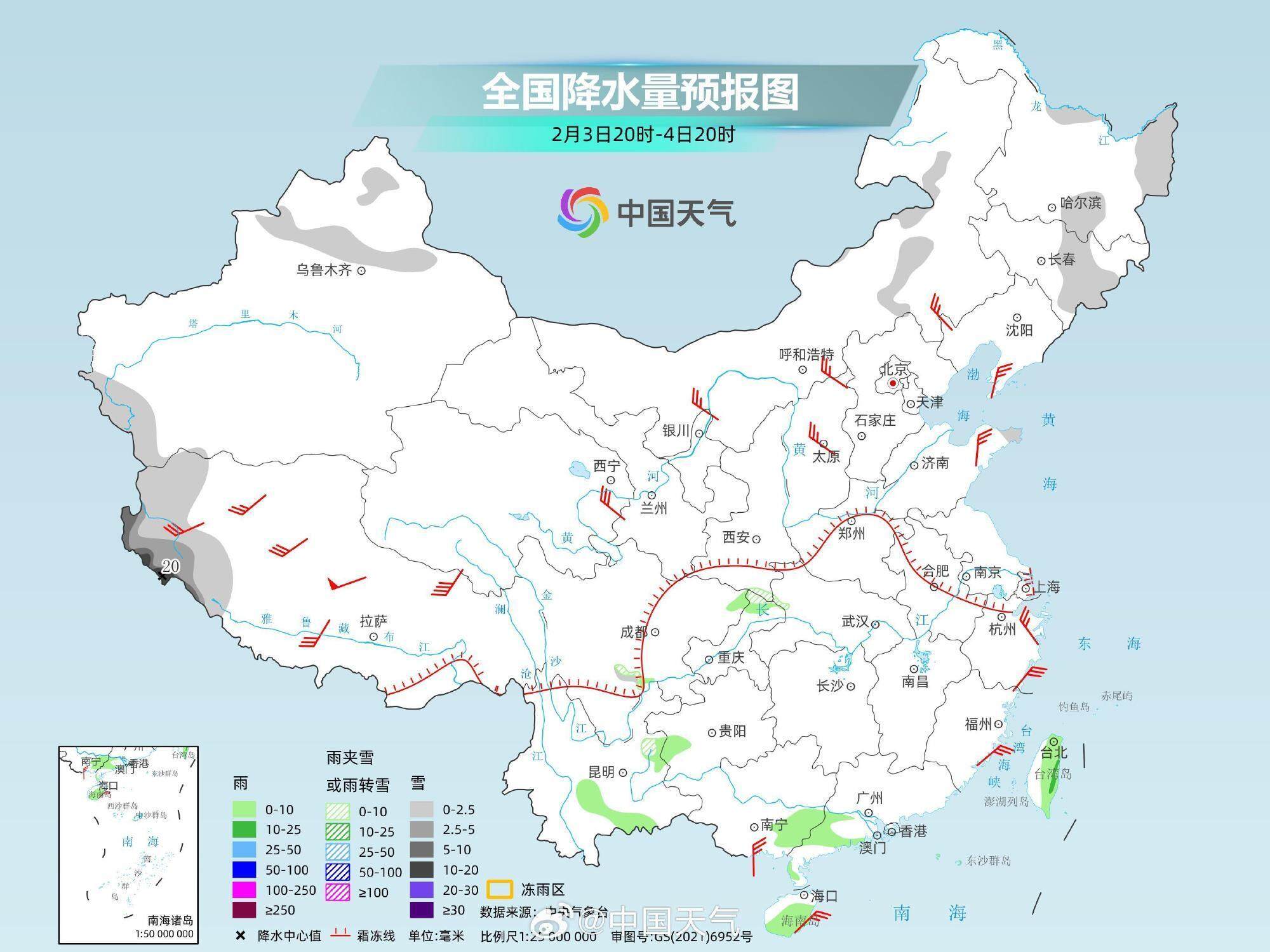 2月3日08時至4日08時,貴州大部、湖南南部、廣西、福建和海南陰天有小雨,周邊省份的其餘地區陰天間多雲,局部有小雨或(輕)霧。
