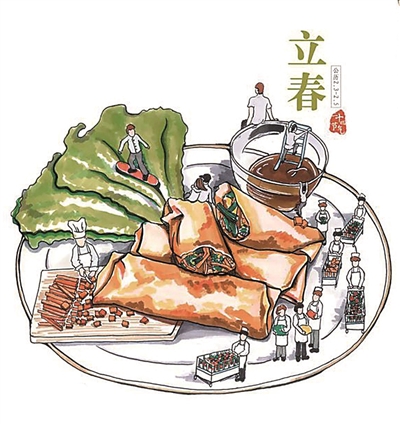 圖為羅書環《二十四節氣美食插畫·立春》。