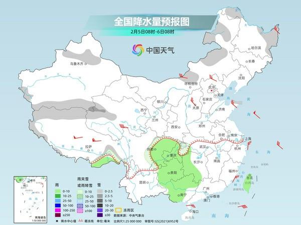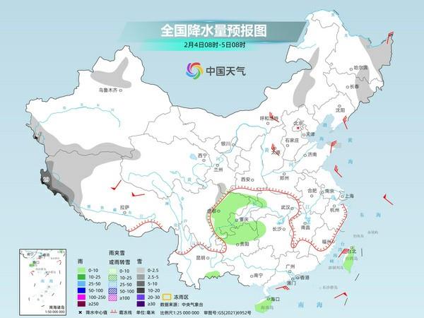 今明天,我國大部雨雪天氣縮減,天氣總體利於春運返程出行,但5日起隨着暖濕氣流增強,與南下冷空氣交匯,南方又將有一次較大範圍的降水過程,公眾需保持關注,注意出行安全。