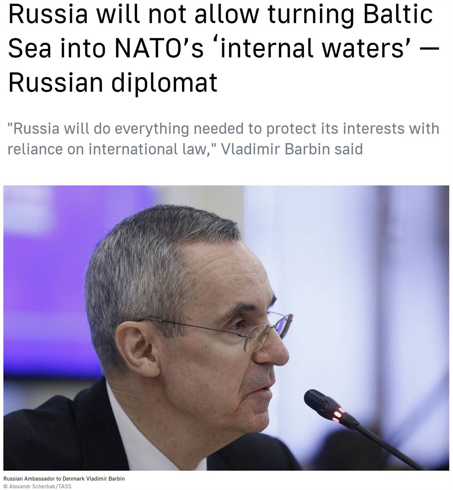 俄羅斯駐丹麥大使弗拉基米爾·巴爾賓2日在接受俄羅斯媒體採訪時表示,北約正試圖將波羅的海變成北約的內海,俄羅斯將根據國際法採取一切必要措施,保護自己的利益。