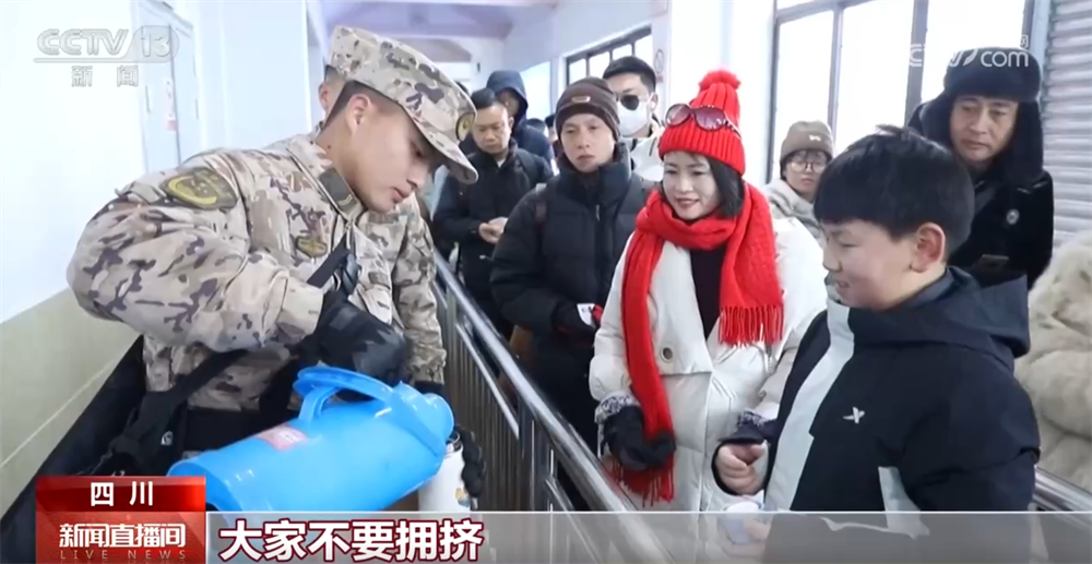 從春節前一直到正月十五,官兵們都會全時值守在景區各個交通樞紐和遊客聚集的區域,金頂索道是峨眉山交通鏈的一個重要樞紐,高峯時遊客能排起幾百米甚至上千米的長隊。