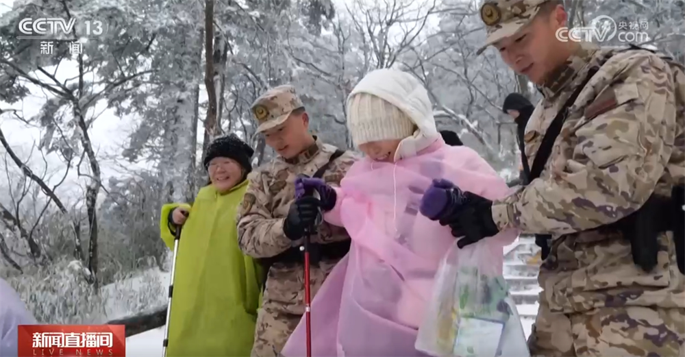 武警四川總隊樂山支隊葉劍江稱:“這條路是我們登山必經之路,你看我們腳下的積雪,它如果踩實之後會結成厚厚的冰塊,走上去很硬很滑,所以我們每次上勤之後第一件事情就是剷雪除冰,確保遊客能夠順利通行。”