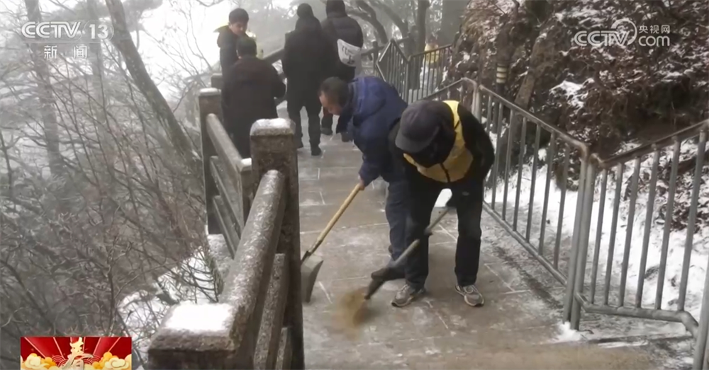 安徽黃山:景區迎降雪 鏟冰除雪保安全