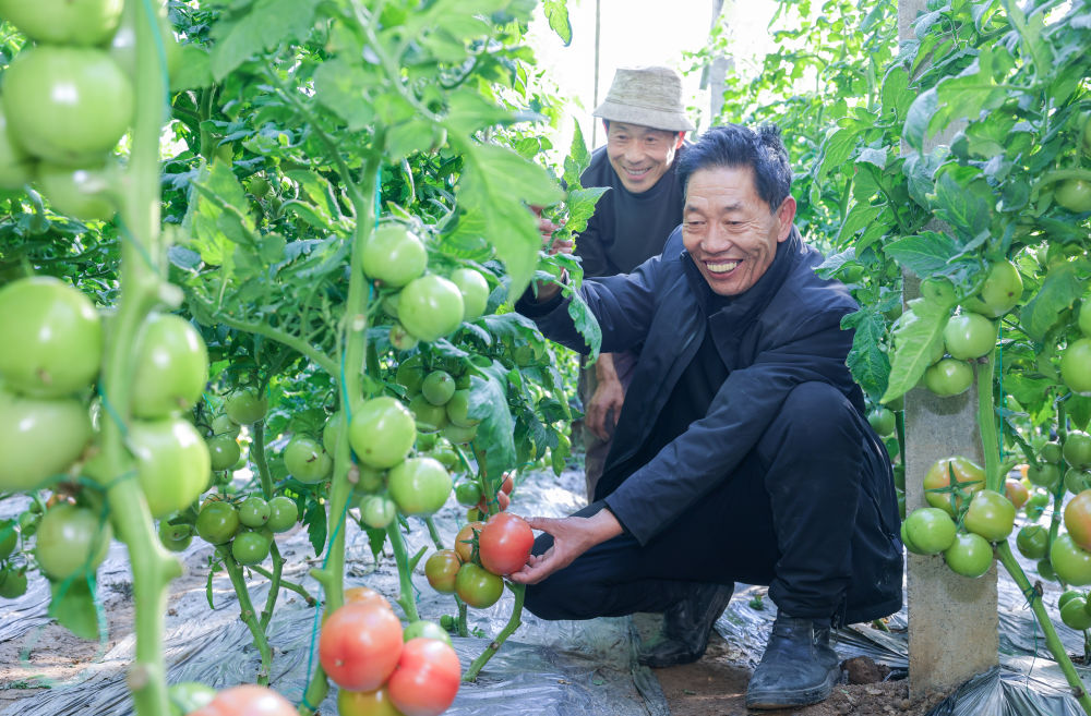 “長偉,這茬兒西紅柿採摘不用太早,今年天氣好,温度高,再讓它們多長長。”路上,梅根清遇到了同村村民梅長偉。這個年輕的小夥子記掛着自家大棚裏西紅柿的長勢,一早也奔向了自家大棚。
