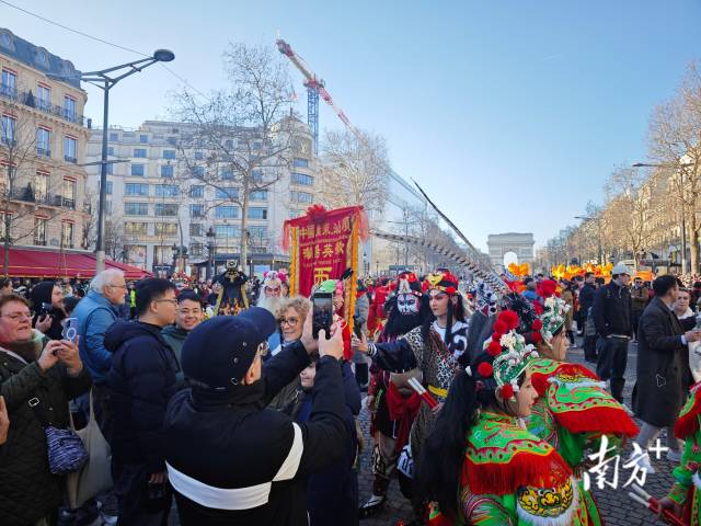 當地時間大年初五(2月2日)下午,被譽為“世界三大繁華中心大街”之一的巴黎香榭麗舍大街鑼鼓喧天,掌聲雷動,處處洋溢着熱鬧而喜慶的新春氣氛。