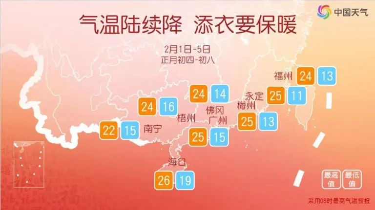 *華南地區降温將更加劇烈。*由於近日暖濕氣流加持下,氣温被推高,這就給之後冷空氣到來預留了更大降温空間。預計未來幾天華南不少地方過程降温可達到6~10℃,隔天如換季!