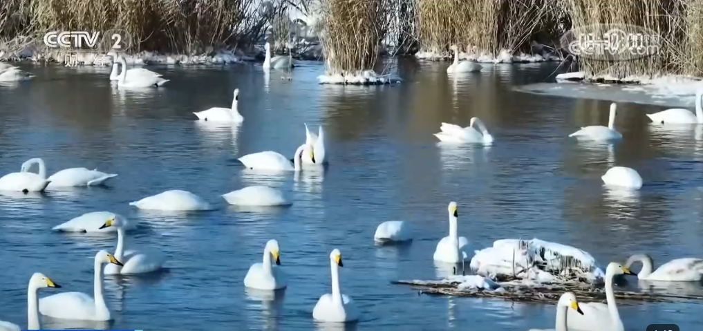 這兩天,在瑪納斯國家濕地公園天鵝緣景區,近千隻身姿優雅的大天鵝集聚在一起棲息覓食。潔白的大天鵝或卧或立,或引吭高歌,靈動的身影與茫茫雪景相互交織,遊客紛紛拍照留念,捕捉最美的時刻。