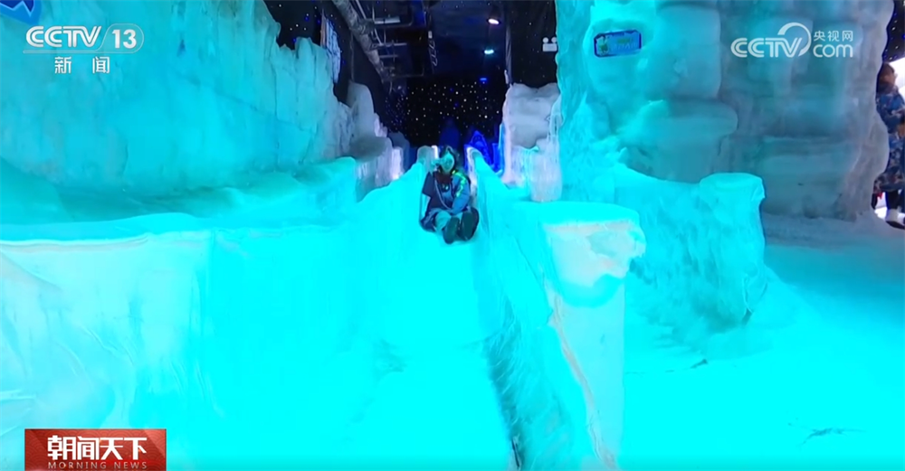在海口,儘管室外温度有20多攝氏度,但在這家冰雪世界裏面,遊客們卻可以體驗一秒入冬。