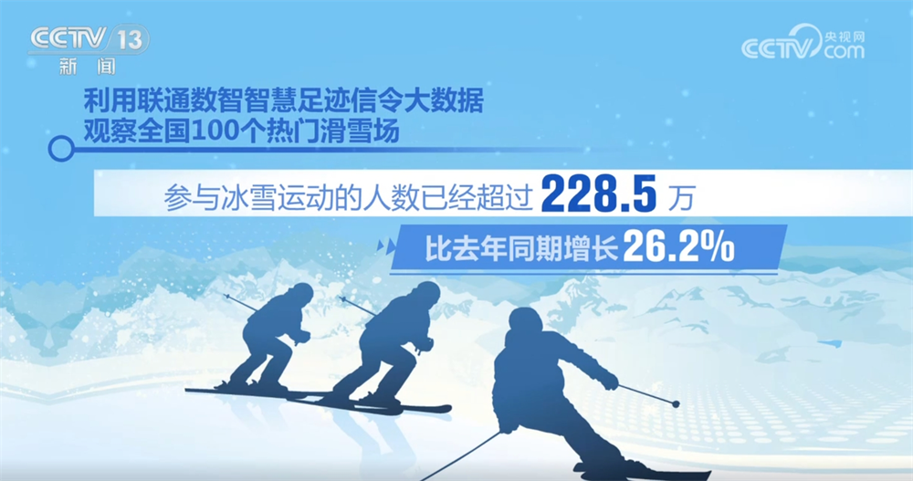 今年春節,去哪兒平台旅遊景區門票預訂數據顯示,春節冰雪季遊熱門目的地前十里,有一半在南方城市。而利用聯通數智智慧足跡信令大數據觀察全國100個熱門滑雪場發現,參與冰雪運動的人數已經超過228.5萬,比去年同期增長26.2%。