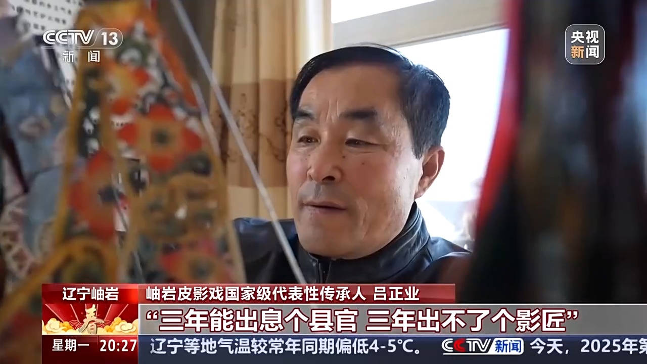 *岫巖皮影戲國家級代表性傳承人 呂正業:*再早有這麼一句話,“三年能出息個縣官,三年出不了個影匠”,就是唱影這行也不是那麼好學的。我希望有個接班人,為皮影戲注入新的血脈,將這個民間藝術持續下去。