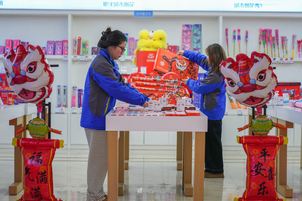 大瑤鎮一家花炮企業的員工在整理帶有春節元素的新產品。新華社記者 陳澤國 攝