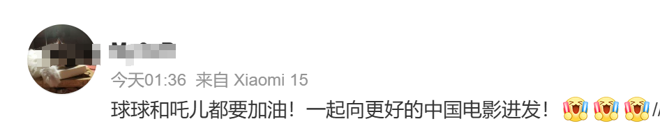 “球球和吒兒都要加油!一起向更好的中國電影進發!”
