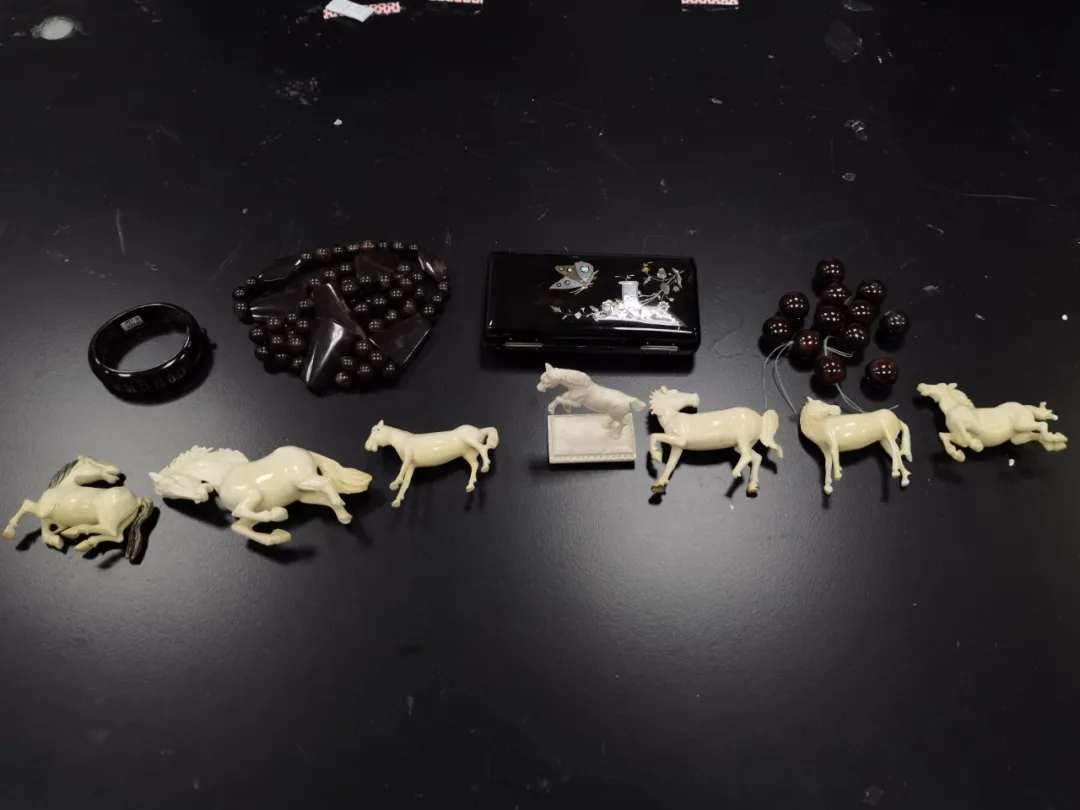 經送技術機構鑑定,確認上述11件飾品中,7件馬造型雕像為哺乳綱長鼻目象科現代象的象牙製品,其餘4件物品為爬行綱龜鱉目海龜科玳瑁的背甲殼製品。現代象、玳瑁均屬於《瀕危野生動植物種國際貿易公約》(CITES)附錄列明的保護物種。