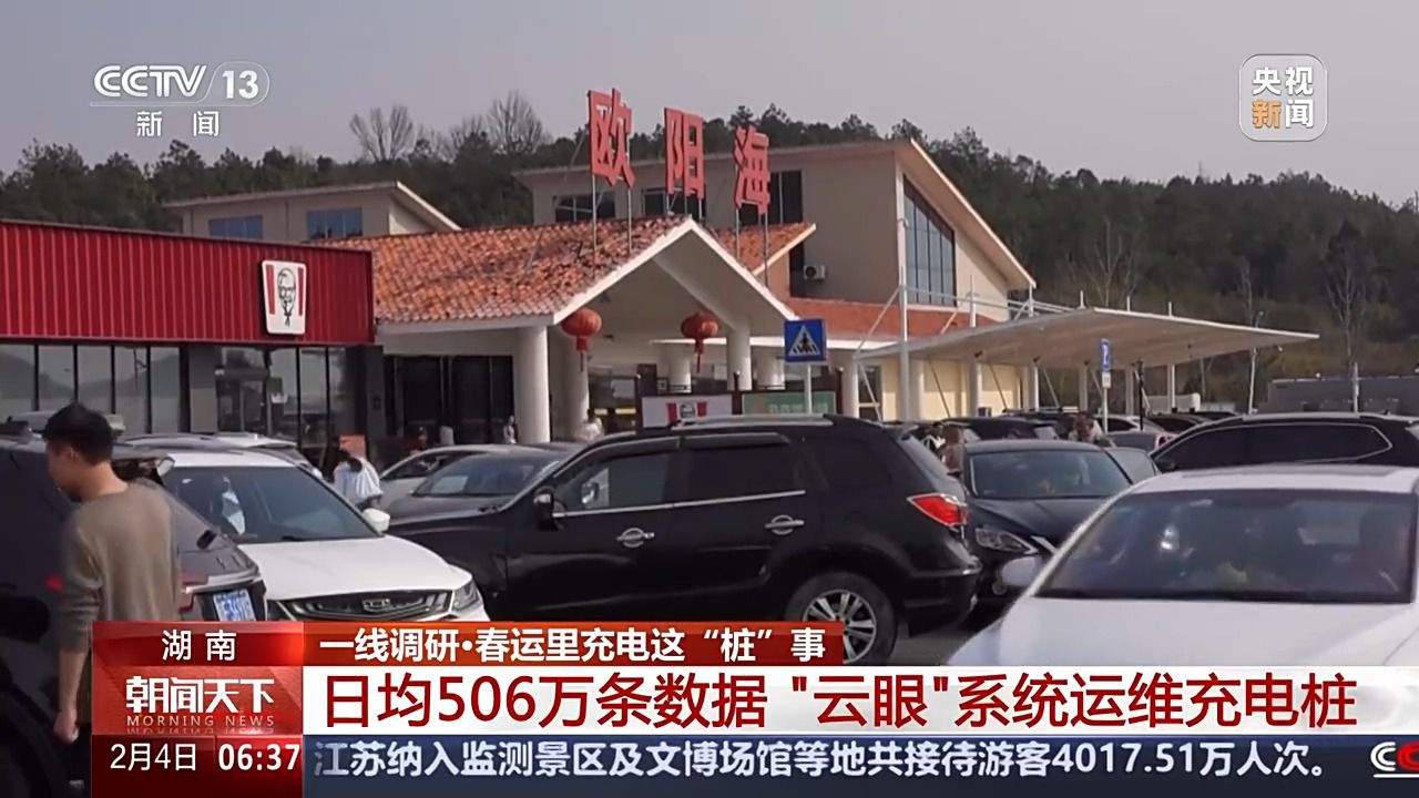 *國網湖南電動汽車服務有限公司充電運營中心主任 鄢笠:*產生的數據量大概每天506萬條,我們就根據平台看板的分析,對高速服務區郴州歐陽海、株洲的醴陵、懷化的漵浦和衡陽常寧這4個服務區繁忙站點進行了擴建,以滿足今年春運的需求。