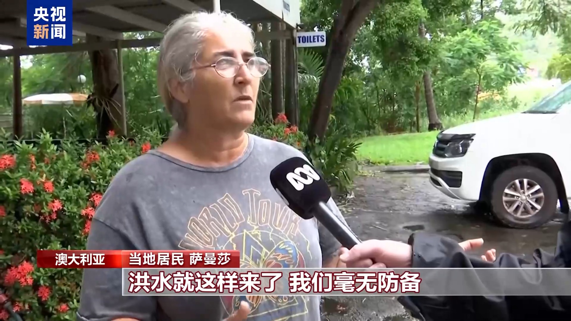*當地居民 薩曼莎:*洪水就這樣來了,我們毫無防備。很多人都毫無防備,在這兒住了20年的人都説,他們從未見過這樣的情況。