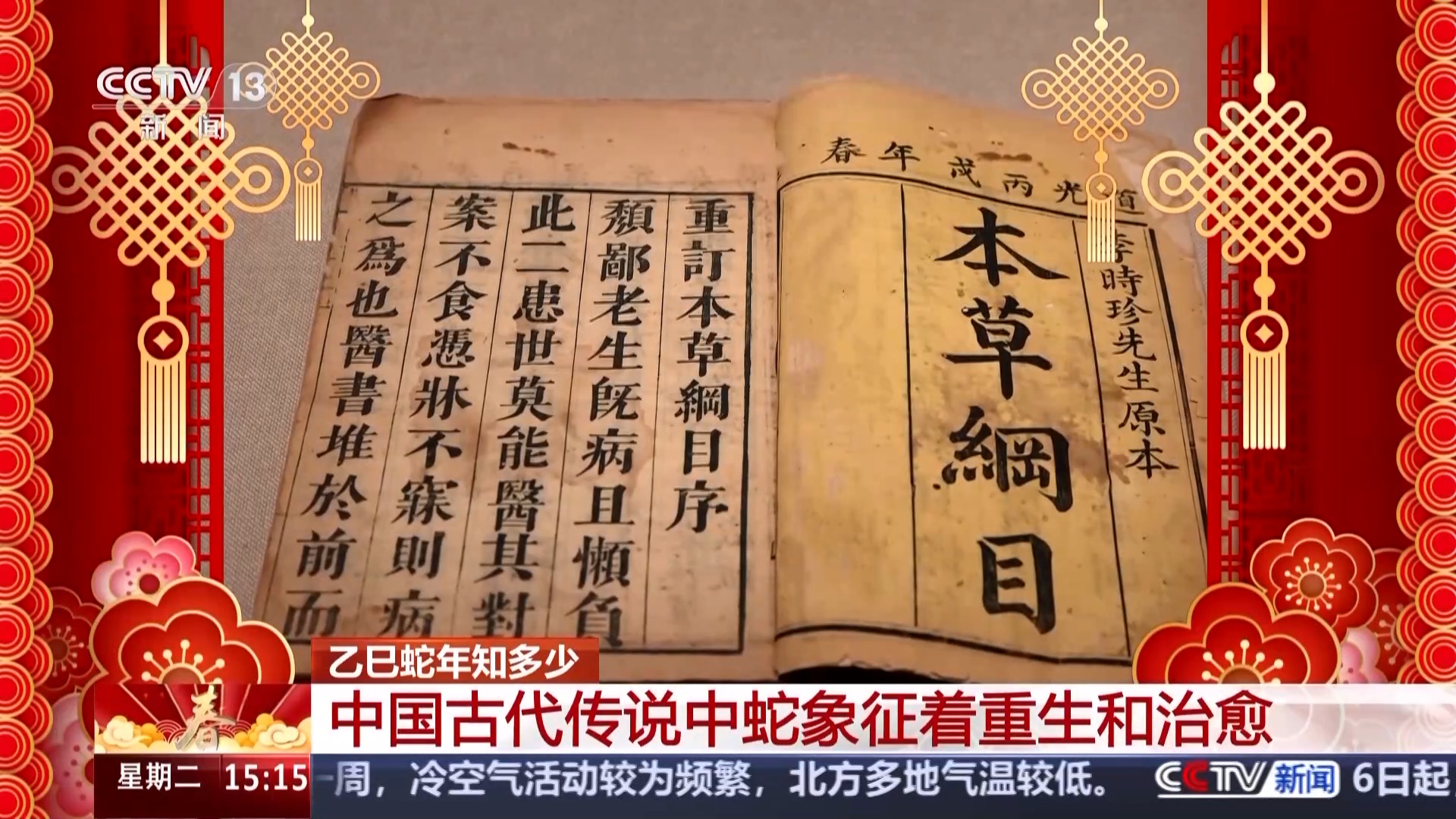此外,在中國古代傳説中,蛇還象徵着重生和治癒。《山海經》就有用蛇治病的記載,著名醫學家李時珍所著的《本草綱目》中也有以蛇為藥的記錄,根據蛇不同的部位,介紹了蛇對治療人體諸多疾病的成效。