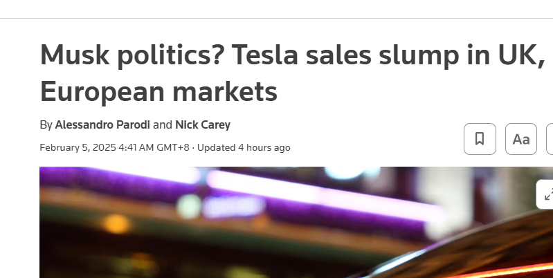 外媒:特斯拉在歐洲市場銷量下滑,馬斯克政治傾向引爭議