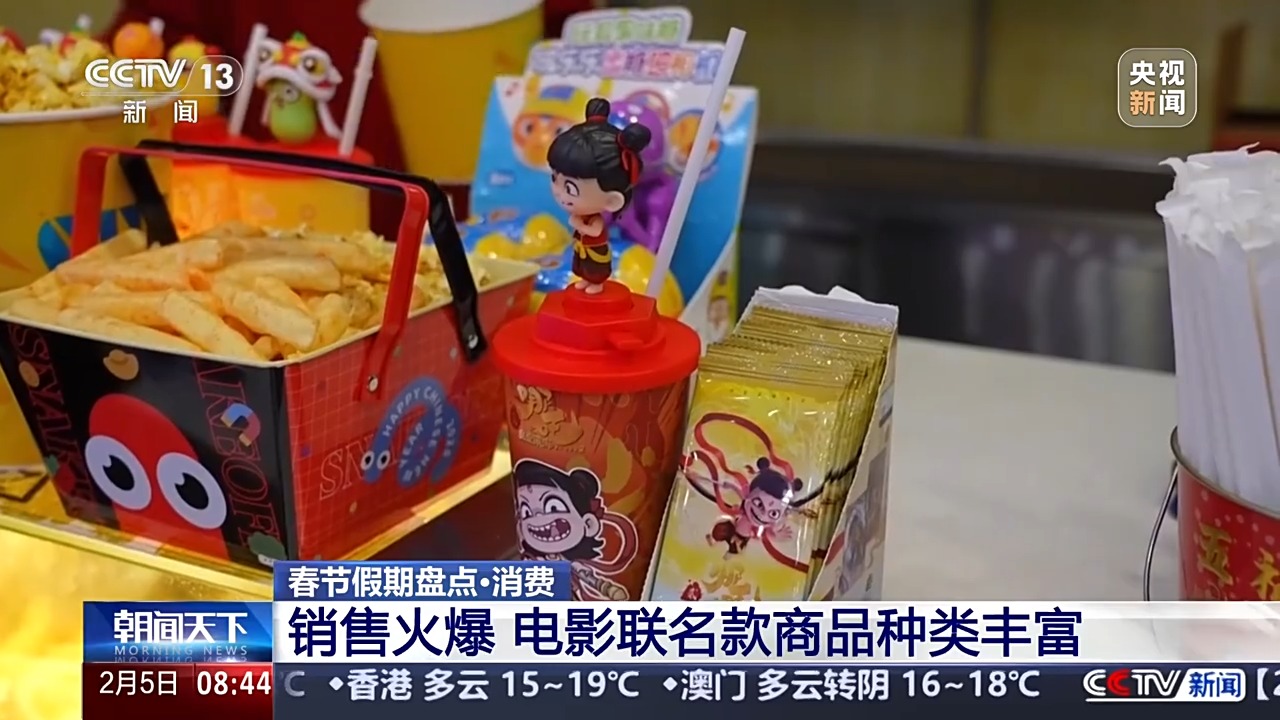根據統計,今年六部春節檔影片,在預售期公佈的聯名品牌已近120個,涵蓋盲盒、數碼、黃金珠寶等多個春節熱門消費領域。值得注意的是,六年前,《哪吒》第一部的片尾名單中,還沒有消費品品牌。而今年的續作中,直接露出的合作消費品牌就達到12個。在北京的幾個商場,記者都看到了慕名來買聯名產品的消費者,有的想搶最新推出的盲盒手辦,有的直奔黃金飾品,還有的買到了聯名手機。