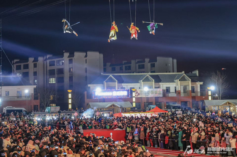 2月2日晚,2025“西遊西海·穿越博湖”高空威亞特技飛天音樂節在博湖縣舉行。年磊攝