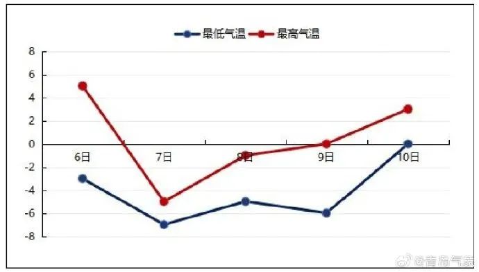最低氣温沿海地區可降至-9~-7℃,內陸地區-11~-8℃,7日、8日白天大部分地區最高氣温低於0℃。