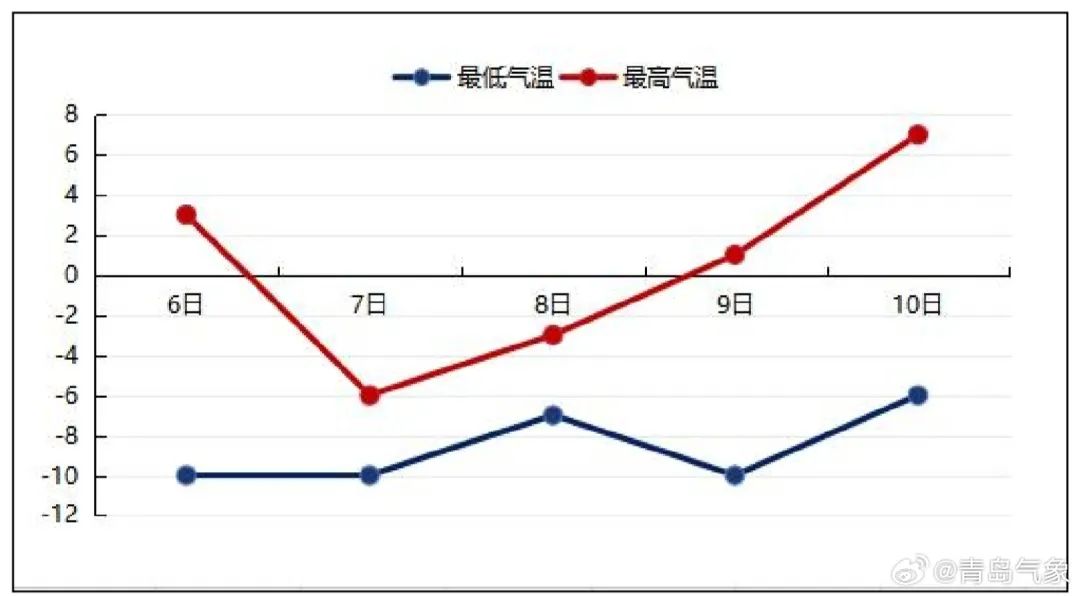 圖1:6日~10日青島市區氣温預報(單位:℃)
